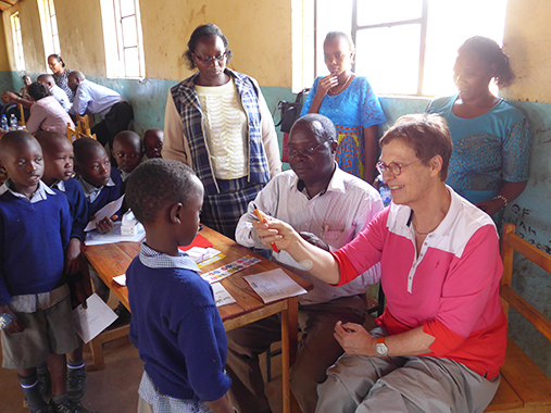 Anfang dieses Jahres fand der KARIBU-Workshop erstmals in Kerugoya in der Nähe des Mount Kenya statt. Insgesamt nahmen 10 Schwestern und Pfleger aus verschiedenen Kinderabteilungen des ortsansässigen Krankenhauses an der 4-tägigen Schulung teil. Schwerpunkte im theoretischen Teil des Workshops waren ernsthafte kindliche Augenerkrankungen sowie deren Früherkennung und Behandlung. Im praktischen Teil wurden Kinder auf der Kinderstation und in einer Grundschule gescreent.